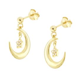 Bracciale con catena forzatina diamantata e catena crystal bianchi con accessorio pendente plain a forma di luna con finitura lisc...