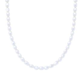 Bracciale rigido contrarie con canna a sezione tonda e finitura liscia e lucida, accessori perle bianche in vetro perlato alle est...