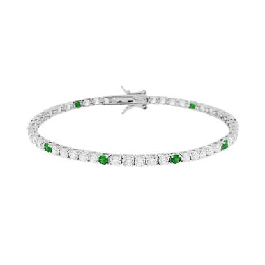 Bracciale Tennis con cubic Zirconia alternati, tre Verde Smeraldo e uno Bianco, incastonati su montatura 4 Griffe.