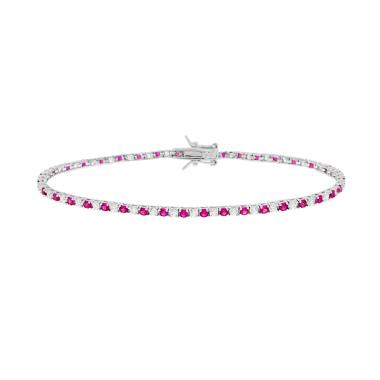 Bracciale Tennis con Cubic Zirconi Bianchi e Rosso Rubino incastonati alternati su montatura 4 Griffe.