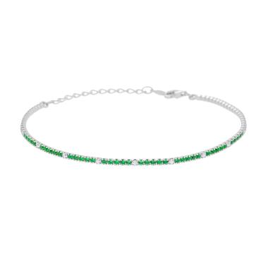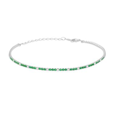 Bracciale Tennis con cubic Zirconia, cinque Verde Smeraldo alternati a uno bianco su montatura 4 Griffe.
