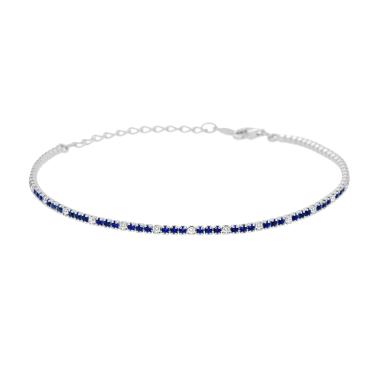 Bracciale Tennis con cubic Zirconia alternati, tre Blu Zaffiro e uno Bianco, incastonati su montatura 4 Griffe.