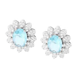 Ciondolo di forma Ovale con Zircone Acquamarina contornato da Zirconi Bianchi.
