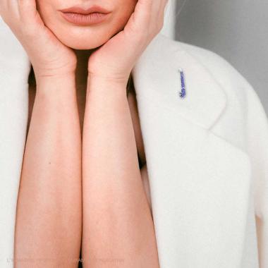 Spilla a forma di spilla da balia con cubic zirconia Blu Zaffiro incastonati.