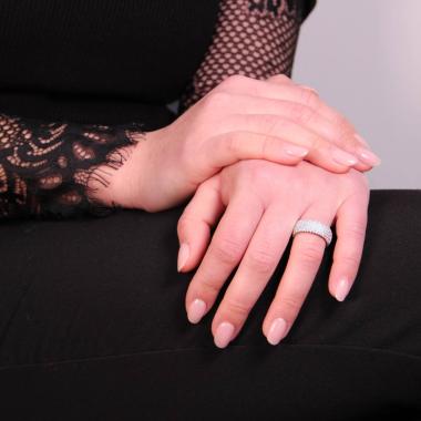 Anello a Fascia con striscia bombata ondulata con zirconi bianchi incastonati.