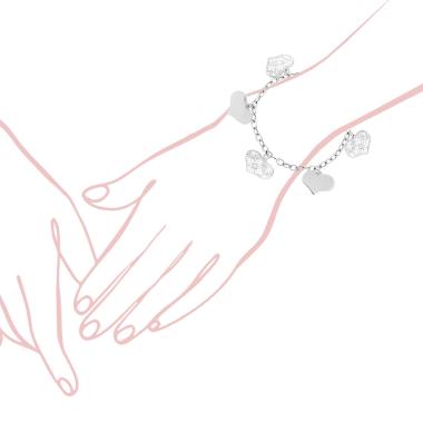 Bracciale composto da tre fili di catena rolò con accessori a forma di cuore col lavorazione traforata effetto filigrana brillant...