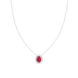 Orecchini a lobo goccia con Zircone colore Rosso Rubino contornato con Zirconi Bianchi.