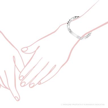 Bracciale con catena grumetta diamantata e Targa rettangolare centrale con finitura liscia e lucida.