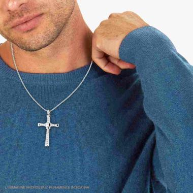 Collana con catena Veneziana Tonda con accessorio pendente a forma di croce con Gesù Cristo a rilievo con finitura liscia e lucid...
