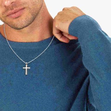Collana con catena Veneziana Tonda con accessorio pendente a forma di croce con finitura liscia e lucida e dettagli lineari a lase...