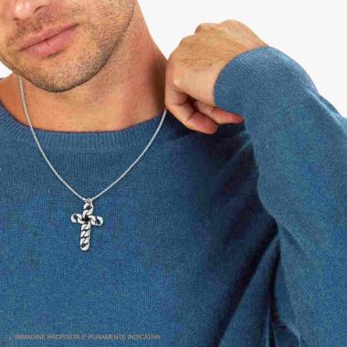 Collana con catena Veneziana tonda con accessorio pendente a forma di croce con dettaglio colore nero e finitura liscia e lucida.<...