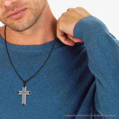 Collana con catena veneziana tonda con accessorio pendente a forma di croce colore nero con piastra colore acciaio e Crystal bianc...
