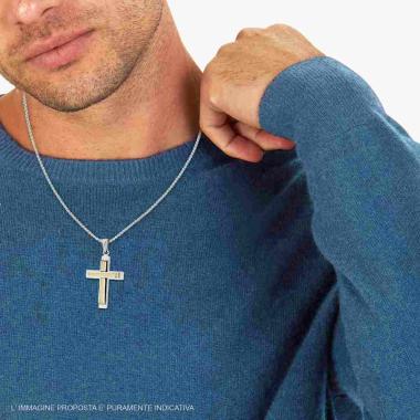 Collana con catena Forzatina Diamantata con accessorio pendente a forma di croce, lavorazione finitura liscia e lucida.