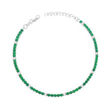 Bracciale Tennis con Cubic Zirconi Bianchi e Verde Smeraldo incastonati alternati su montatura 4 Griffe.