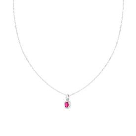 Orecchini cerchio con accessorio ovale rosso rubino con cubic zirconia bianchi incastonati intorno.