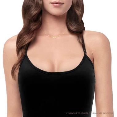 Collana con Grani in Crystal Neri con accessorio centrale in linea a forma di Stella, con finitura liscia e lucida.