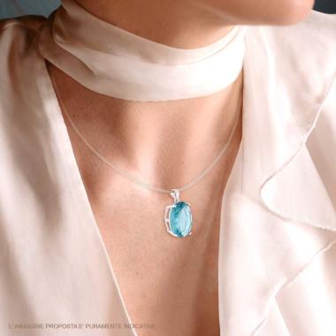 Ciondolo con Cubic zirconia ovale colore Acquamarina su montatura 4 Griffe.
