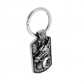 Portachiavi ad anello con accessorio pendente a forma di amo con soggetto falco con finitura lucida e brunita.