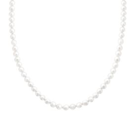 Collana con catena forzatina diamantata con accessorio pendente perla bianca in vetro perlato con crystal bianchi incastonati into...