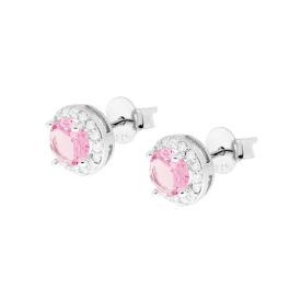 Ciondolo trilogy con passante per catena composto da zirconi tondi rosa con zirconi bianchi incastonati intorno.