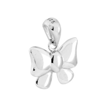 Parure Set Orecchini e Ciondolo a forma di fiocco con finitura liscia, lucida e leggermente bombata.