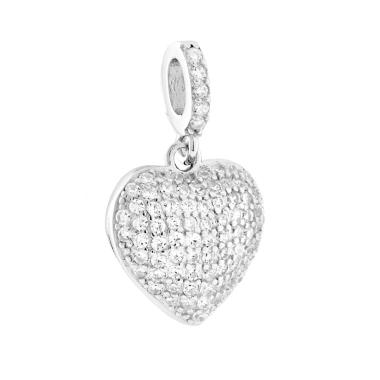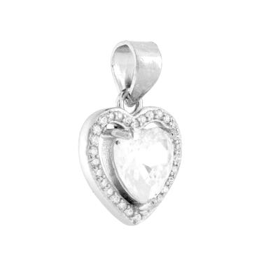Parure Set Orecchini e Ciondolo a forma di cuore bombato con cubic zirconia bianchi incastonati.