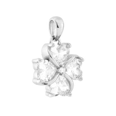 Parure Set Orecchini e Ciondolo a forma di Quadrifoglio con cubic zirconia cuore bianchi incastonati.
