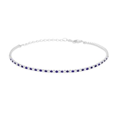 Bracciale Tennis con Zirconi Bianchi e Blu Zaffiro incastonati alternati, uno bianco ed uno Blu Zaffiro, su montatura 4 Griffe.