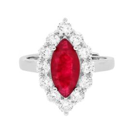 Orecchini chiusura a scatto con ovali Rosso Rubino con cubic zirconia bianchi incastonati intorno.