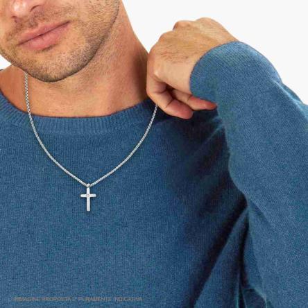Collana con catena forzatina con accessorio pendente a forma di croce con crystal bianchi incastonati.