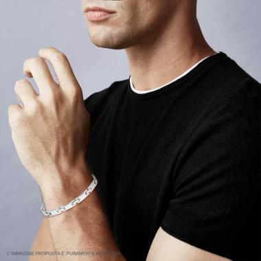 Bracciale con maglia imperniata con dettagli in ceramica colore antracite, accessorio targa con lavorazione quadrettata a laser e ...