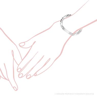 Bracciale con catena Figaro Alternata 3+1 diamantata con accessorio centrale targa con finitura liscia e lucida.