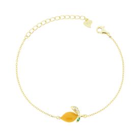 Anello con cubic zirconia incastonati con accessorio pendente a forma di limone 3D con applicazione di smalto colore giallo e cubi...