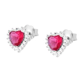 Anello Solitario con Zircone centrale, di forma Ovale, colore Rosso Rubino e Zirconi Bianchi.