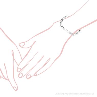 Bracciale con Targa con finitura liscia e lucida e Cubic Zirconia bianco incastonato con catena grumetta con cubic zirconia bianch...