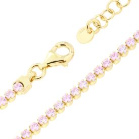 Bracciale due fili Tennis con Cubic Zirconia Bianchi e Rosa su montatura 4 Griffe, chiusura a scomparsa con zirconi bianchi incast...
