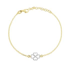 Bracciale con catena Grumetta con palline diamantate e accessorio a forma di quadrifoglio con cuore e finitura liscia e lucida. M...