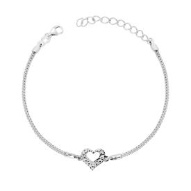 Bracciale con catena calza con accessorio in linea e passante a forma di cuore con finitura liscia e lucida.