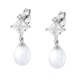 Orecchini con Perla di fiume e Zirconi Bianchi incastonati.
