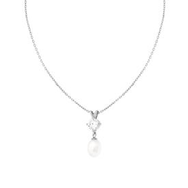 Orecchini con punto luce al lobo cubic zirconia bianco e accessorio perla ovale pendente in vetro perlato.