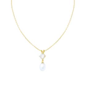 Orecchini con punto luce al lobo cubic zirconia quadrato bianco e accessorio perla ovale pendente in vetro perlato.