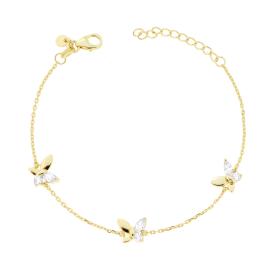 Bracciale con catena specchio con palline diamantate e accessori in linea, farfalle plain e punto luce cuore cubic zirconia bianco...