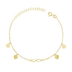 Bracciale con Catena forzatina diamantata con palline lisce e accessorio centrale a forma di infinito plain con accanto cuoricino ...