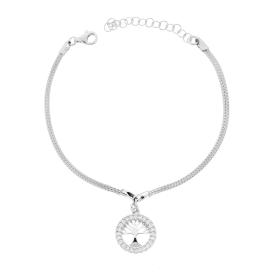 Bracciale Catena calza con accessorio pendente tondo con crystal color bianco incastonato.