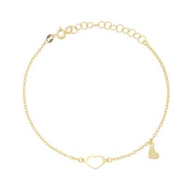 Bracciale composto da cuori piatti con effetto filigrana e lavorazione martellata e traforata.