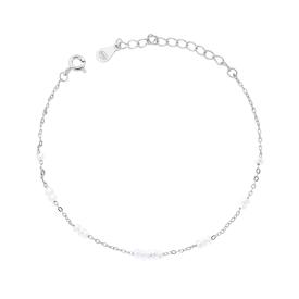 Collana con catena Forzatina Diamantata con punto luce cubic zirconia bianco e trilogy degradè di perle in vetro perlato. Made in...