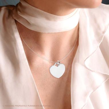 Ciondolo Piastrina a forma di Cuore con lavorazione liscia e lucida.Made in Italy