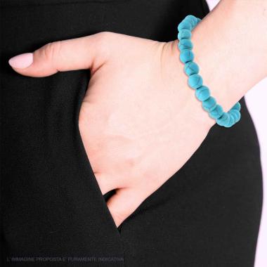 Bracciale elastico con filo di perle sintetiche colore rosso corallo.
