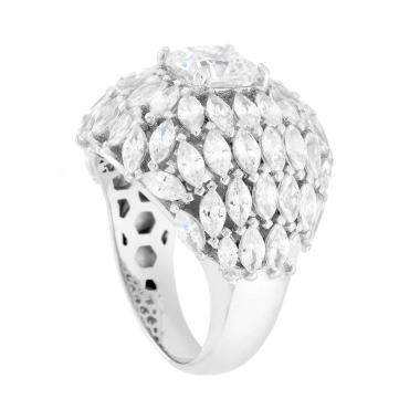 Anello a fascia con ventagli di cubic zirconia taglio trapezio multicolor alternati a cubic zirconia bianchi incastonati.